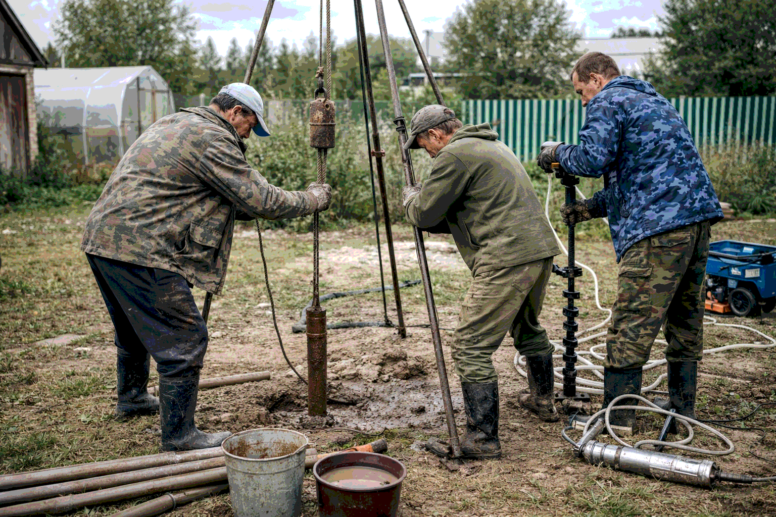 Бурение скважины своими руками — реальная задача для дачника при глубине водоносного горизонта 5-28 метров. Ударно-канатный и шнековый методы позволяют достичь дебита 0,25-1,4 м³/час без спецтехники. Максимальная глубина бурения скважины своими руками достигает 32 метров при организованной бригаде из 3 человек.