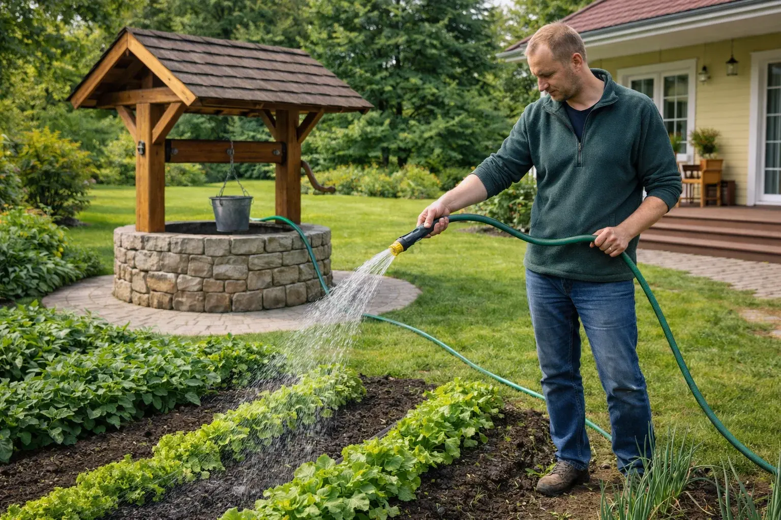 Насос для колодца на даче подбирают по дебиту и расстоянию до дома: погружной насос работает тише и стабильнее, а колодец на даче меньше страдает от неправильной откачки. Автоматика (реле давления, гидроаккумулятор) сглаживает включения и защищает систему от «сухого хода».