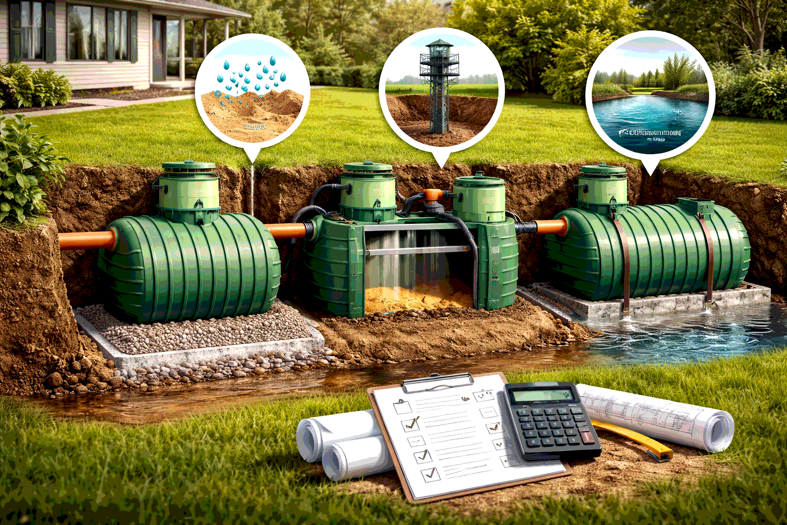 В «ВодаРядом» помогут выбрать пластиковый септик с правильным объёмом и смонтируют его под ключ с гарантией. Подробнее об услуге.