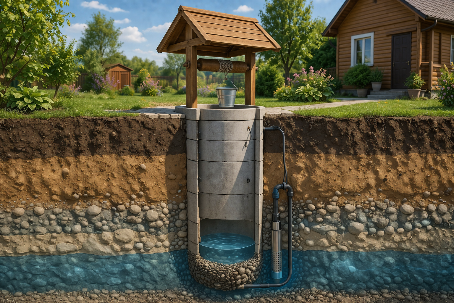 Но важно понимать ограничение: такой источник работает только там, где вода находится сравнительно близко. Если водоносный горизонт залегает глубоко, скважина без бурения не даст нужного результата. Для постоянного дома с высоким расходом воды такая скважина подходит не всегда.