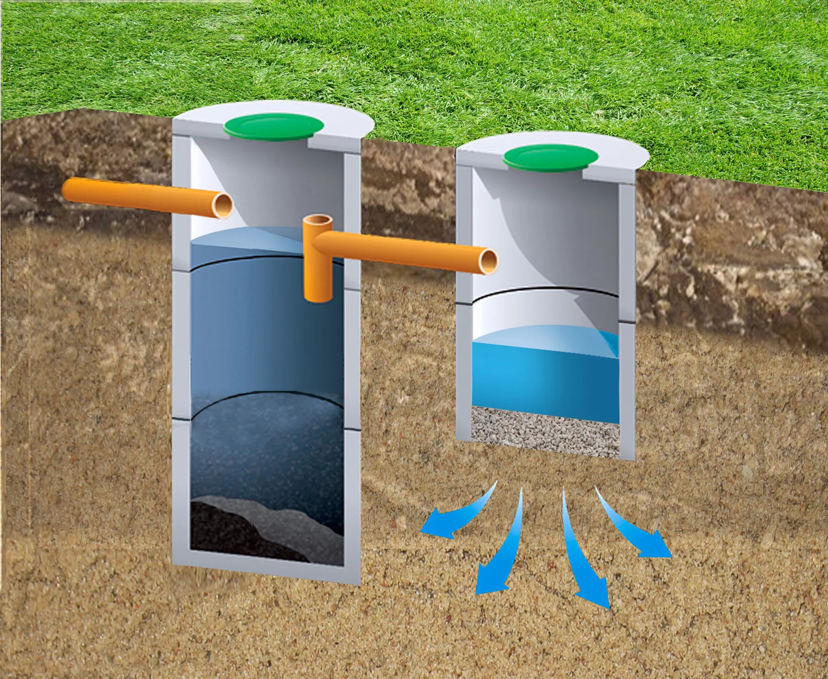 Верхний люк септика должен быть доступен для обслуживания и откачки, поэтому яма для септика роется так, чтобы люк оказался на уровне земли или чуть ниже. Глубина котлована варьируется от 1,5 до 2,5 метров в зависимости от модели септика и уровня грунтовых вод участка.